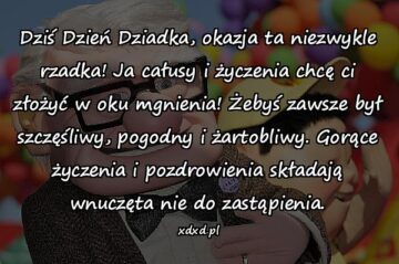 Dziś Dzień Dziadka, okazja ta niezwykle rzadka! Ja całusy i życzenia chcę ci złożyć w oku mgnienia! Żebyś zawsze był szczęśliwy, pogodny i żartobliwy. Gorące...