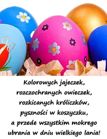 Kolorowych jajeczek, rozczochranych owieczek, rozkicanych króliczków, pyszności w koszyczku, a przede wszystkim mokrego ubrania w dniu wielkiego lania!