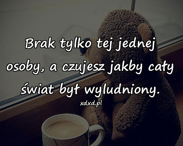 Home Cytaty Cytaty o miłości Tęsknota i czujesz jakby cały świat był wyludniony 3 lata ago 3 lata ago Cytaty o miłości Tęsknota i czujesz jakby cały świat był wyludniony autor: admin 11wyświetleń 845 845 points Brak tylko tej jednej osoby, a czujesz jakby cały świat był wyludniony. Pobierz obrazek Post PaginationPoprzedniPreviousNastępnyNext aforyzmy, besty, brak, cytat, cytaty, cytaty o miłości, lovsy, mem, memy, miłość, obrazki, pustka, samotność, sentencje, te myśli, tęsknota, uczucia, wyludnienie Twoja reakcja? zmieszany 0 zmieszany porażka 0 porażka zabawne 0 zabawne zły 0 zły miłośc 0 miłośc fajne 0 fajne lol 0 lol omg 0 omg 0 komentarzy Anuluj pisanie odpowiedziTwój adres e-mail nie zostanie opublikowany. Wymagane pola są oznaczone * Zapamiętaj moje dane w tej przeglądarce podczas pisania kolejnych komentarzy.