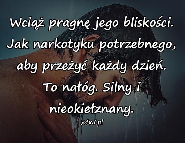 Wciąż pragnę jego bliskości. Jak narkotyku potrzebnego, aby przeżyć każdy dzień. To nałóg. Silny i nieokiełznany.