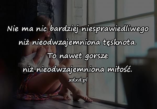 Nie ma nic bardziej niesprawiedliwego niż nieodwzajemniona tęsknota. To nawet gorsze niż nieodwzajemniona miłość.
