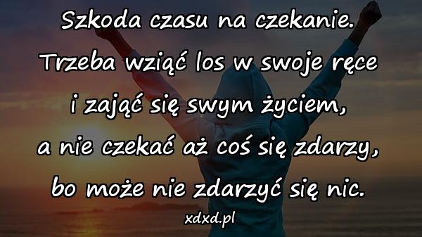Szkoda czasu na czekanie. Trzeba wziąć los w swoje ręce i zająć się swym życiem, a nie czekać aż coś się zdarzy, bo może nie zdarzyć się nic.