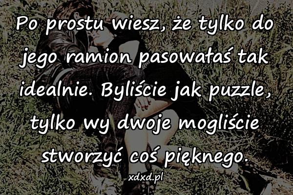 Po prostu wiesz, że tylko do jego ramion pasowałaś tak idealnie. Byliście jak puzzle, tylko wy dwoje mogliście stworzyć coś pięknego.