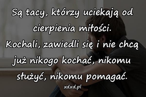 Są tacy, którzy uciekają od cierpienia miłości. Kochali, zawiedli się i nie chcą już nikogo kochać, nikomu służyć, nikomu pomagać.