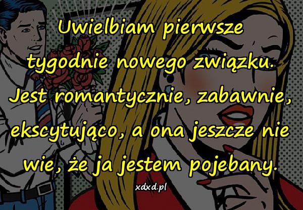 Uwielbiam pierwsze tygodnie nowego związku. Jest romantycznie, zabawnie, ekscytująco, a ona jeszcze nie wie, że ja jestem pojebany.