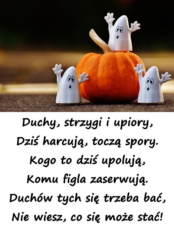 Duchy, strzygi i upiory, Dziś harcują, toczą spory. Kogo to dziś upolują, Komu figla zaserwują. Duchów tych się trzeba bać, Nie wiesz, co się może stać!