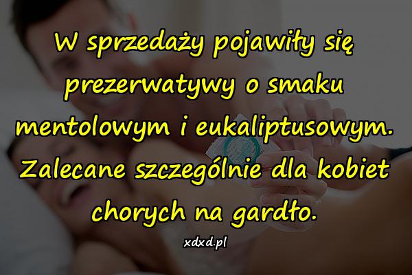 W sprzedaży pojawiły się prezerwatywy o smaku mentolowym i eukaliptusowym. Zalecane szczególnie dla kobiet chorych na gardło.