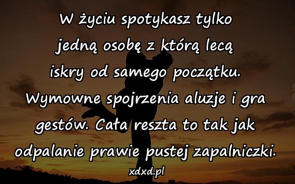 W życiu spotykasz tylko jedną osobę z którą lecą iskry od samego początku. Wymowne spojrzenia aluzje i gra gestów. Cała reszta to tak jak odpalanie prawie pustej zapalniczki.