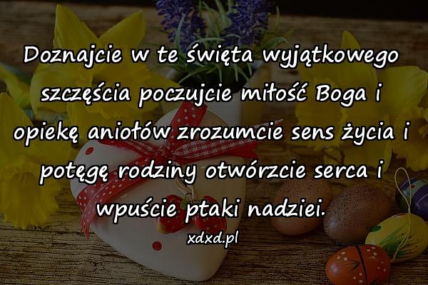 Doznajcie w te święta wyjątkowego szczęścia poczujcie miłość Boga i opiekę aniołów zrozumcie sens życia i potęgę rodziny otwórzcie serca i wpuście ptaki nadziei.