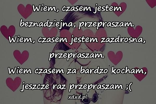 Wiem, czasem jestem beznadziejna, przepraszam. Wiem, czasem jestem zazdrosna, przepraszam. Wiem czasem za bardzo kocham, jeszcze raz przepraszam ;(