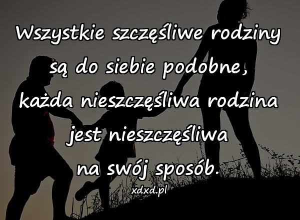 Wszystkie szczęśliwe rodziny są do siebie podobne, każda nieszczęśliwa rodzina jest nieszczęśliwa na swój sposób.