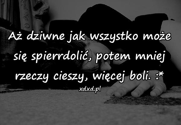 Home Cytaty Cytaty o życiu Wszystko może się spierrdolić 2 lata ago 2 lata ago Cytaty o życiu Wszystko może się spierrdolić autor: admin 12wyświetleń 823 823 points Aż dziwne jak wszystko może się spierrdolić, potem mniej rzeczy cieszy, więcej boli. :* Pobierz obrazek Post PaginationPoprzedniPreviousNastępnyNext aforyzmy, besty, ból, cierpienie, cytat, cytaty, cytaty o życiu, mem, memy, obrazki, samopoczucie, sentencje, życie Twoja reakcja? zmieszany 0 zmieszany porażka 0 porażka zabawne 0 zabawne zły 0 zły miłośc 0 miłośc fajne 0 fajne lol 0 lol omg 0 omg 0 komentarzy Anuluj pisanie odpowiedziTwój adres e-mail nie zostanie opublikowany. Wymagane pola są oznaczone * Zapamiętaj moje dane w tej przeglądarce podczas pisania kolejnych komentarzy.