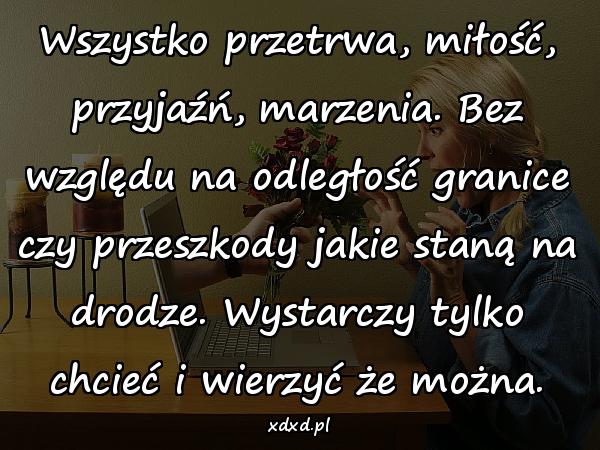 Wszystko przetrwa, miłość, przyjaźń, marzenia. Bez względu na odległość granice czy przeszkody jakie staną na drodze. Wystarczy tylko chcieć i wierzyć że można.