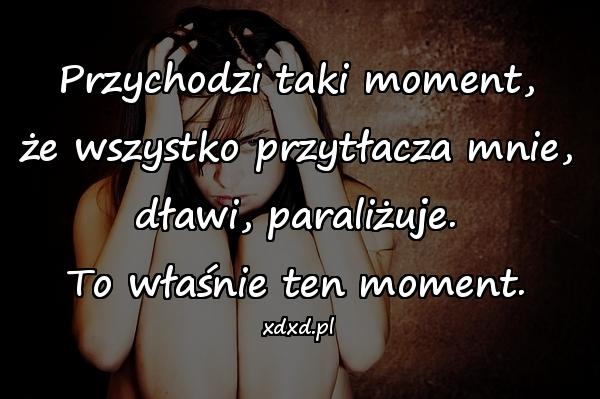 Przychodzi taki moment, że wszystko przytłacza mnie, dławi, paraliżuje. To właśnie ten moment.