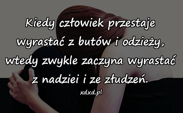 Home Cytaty Cytaty o życiu Zaczyna wyrastać z nadziei i ze złudzeń 3 lata ago 3 lata ago Cytaty o życiu Zaczyna wyrastać z nadziei i ze złudzeń autor: admin 7wyświetleń 833 833 points Kiedy człowiek przestaje wyrastać z butów i odzieży, wtedy zwykle zaczyna wyrastać z nadziei i ze złudzeń. Pobierz obrazek Post PaginationPoprzedniPreviousNastępnyNext aforyzmy, besty, cytat, cytaty, cytaty o życiu, lovsy, mem, memy, nadzieja, obrazki, sentencje, te myśli, złudzenia, życie Twoja reakcja? zmieszany 0 zmieszany porażka 0 porażka zabawne 0 zabawne zły 0 zły miłośc 0 miłośc fajne 0 fajne lol 0 lol omg 0 omg 0 komentarzy Anuluj pisanie odpowiedziTwój adres e-mail nie zostanie opublikowany. Wymagane pola są oznaczone * Zapamiętaj moje dane w tej przeglądarce podczas pisania kolejnych komentarzy.