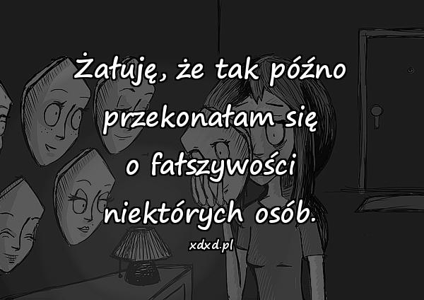 Żałuję, że tak późno przekonałam się o fałszywości niektórych osób.