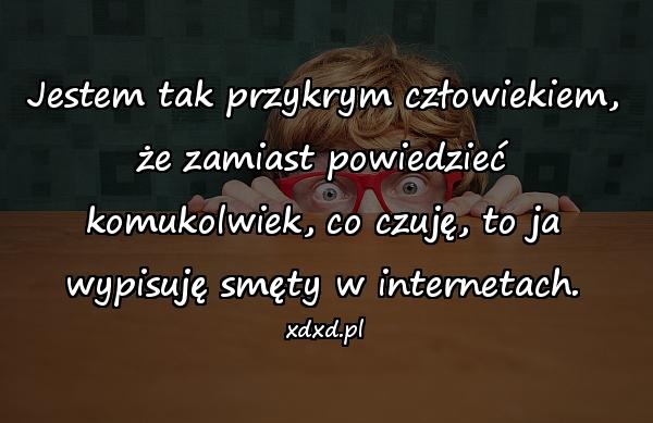 Jestem tak przykrym człowiekiem, że zamiast powiedzieć komukolwiek, co czuję, to ja wypisuję smęty w internetach.