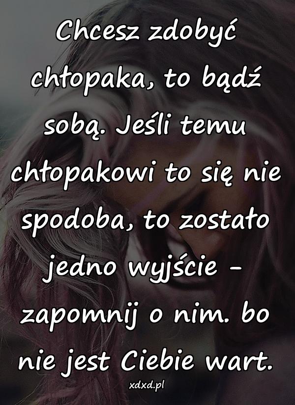 Chcesz zdobyć chłopaka, to bądź sobą. Jeśli temu chłopakowi to się nie spodoba, to zostało jedno wyjście – zapomnij o nim. bo nie jest Ciebie wart.