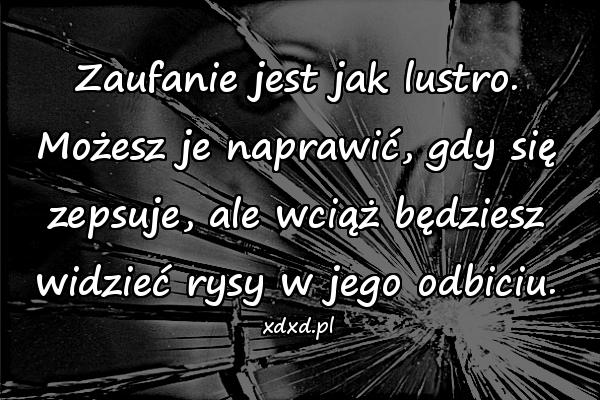 Zaufanie jest jak lustro. Możesz je naprawić, gdy się zepsuje, ale wciąż będziesz widzieć rysy w jego odbiciu.
