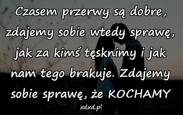 Czasem przerwy są dobre, zdajemy sobie wtedy sprawę, jak za kimś tęsknimy i jak nam tego brakuje. Zdajemy sobie sprawę, że KOCHAMY