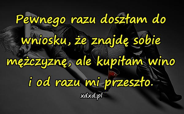 Pewnego razu doszłam do wniosku, że znajdę sobie mężczyznę, ale kupiłam wino i od razu mi przeszło.