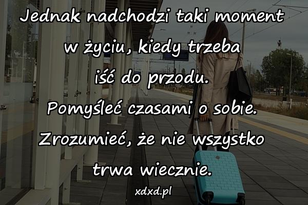 Jednak nadchodzi taki moment w życiu, kiedy trzeba iść do przodu. Pomyśleć czasami o sobie. Zrozumieć, że nie wszystko trwa wiecznie.