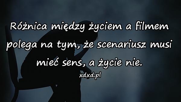 Home Cytaty Cytaty o życiu Życie jest bez sensu 3 lata ago 3 lata ago Cytaty o życiu Życie jest bez sensu autor: admin 50wyświetleń 812 812 points Różnica między życiem a filmem polega na tym, że scenariusz musi mieć sens, a życie nie. Pobierz obrazek Post PaginationPoprzedniPreviousNastępnyNext aforyzmy, besty, bezsens, cytat, cytaty, cytaty o życiu, mem, memy, obrazki, scenariusz, sens, sentencje, życie Twoja reakcja? zmieszany 0 zmieszany porażka 0 porażka zabawne 0 zabawne zły 0 zły miłośc 0 miłośc fajne 0 fajne lol 0 lol omg 0 omg 0 komentarzy Anuluj pisanie odpowiedziTwój adres e-mail nie zostanie opublikowany. Wymagane pola są oznaczone * Zapamiętaj moje dane w tej przeglądarce podczas pisania kolejnych komentarzy.