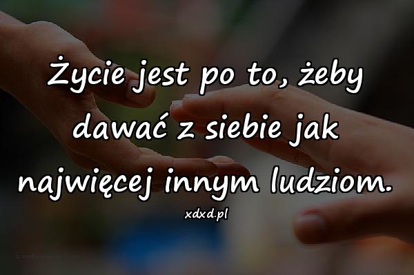 Życie jest po to, żeby dawać z siebie jak najwięcej innym ludziom.