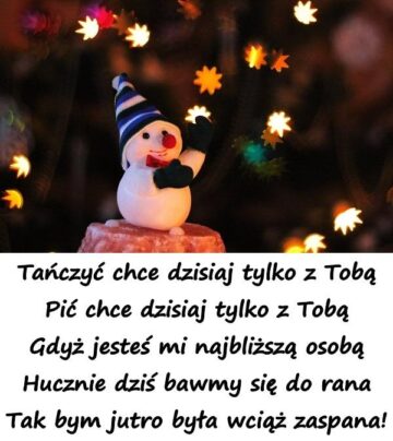 Życzenia Noworoczne Tańczyć chce dzisiaj tylko z Tobą Pić chce dzisiaj tylko z Tobą Gdyż jesteś mi najbliższą osobą Hucznie dziś bawmy się do rana...