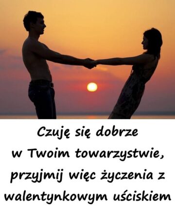 Czuję się dobrze w Twoim towarzystwie, przyjmij więc życzenia z walentynkowym uściskiem.