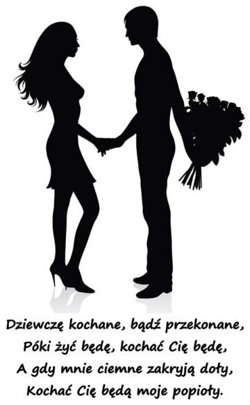 Dziewczę kochane, bądź przekonane, Póki żyć będę, kochać Cię będę, A gdy mnie ciemne zakryją doły, Kochać Cię będą moje popioły.