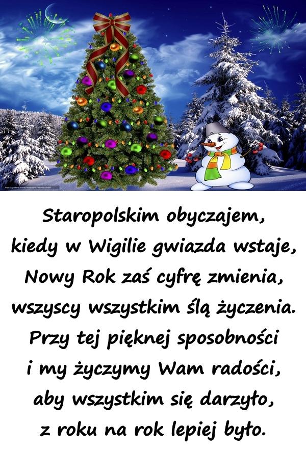 Staropolskim obyczajem, kiedy w Wigilie gwiazda wstaje, Nowy Rok zaś cyfrę zmienia, wszyscy wszystkim ślą życzenia. Przy tej pięknej sposobności i my życzymy Wam radości, aby wszystkim się darzyło, z roku na rok lepiej było.