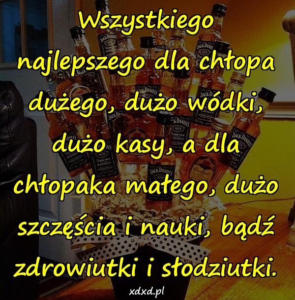 Wszystkiego najlepszego dla chłopa dużego, dużo wódki, dużo kasy, a dla chłopaka małego, dużo szczęścia i nauki, bądź zdrowiutki i słodziutki.